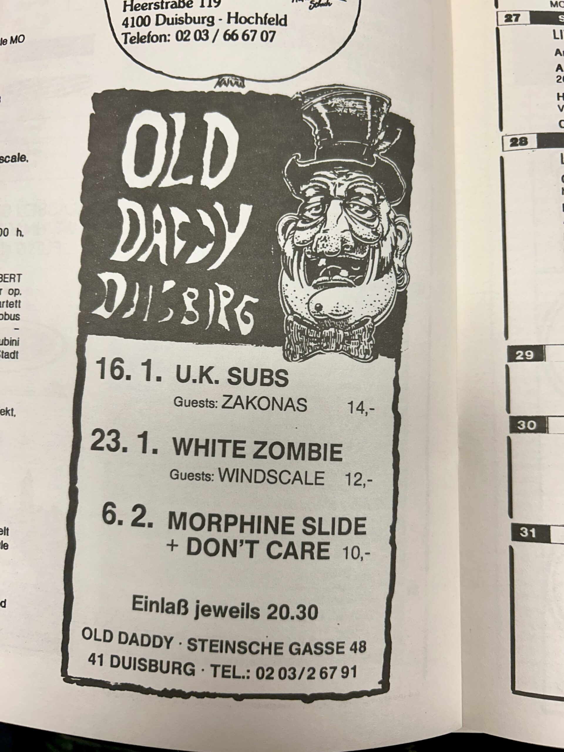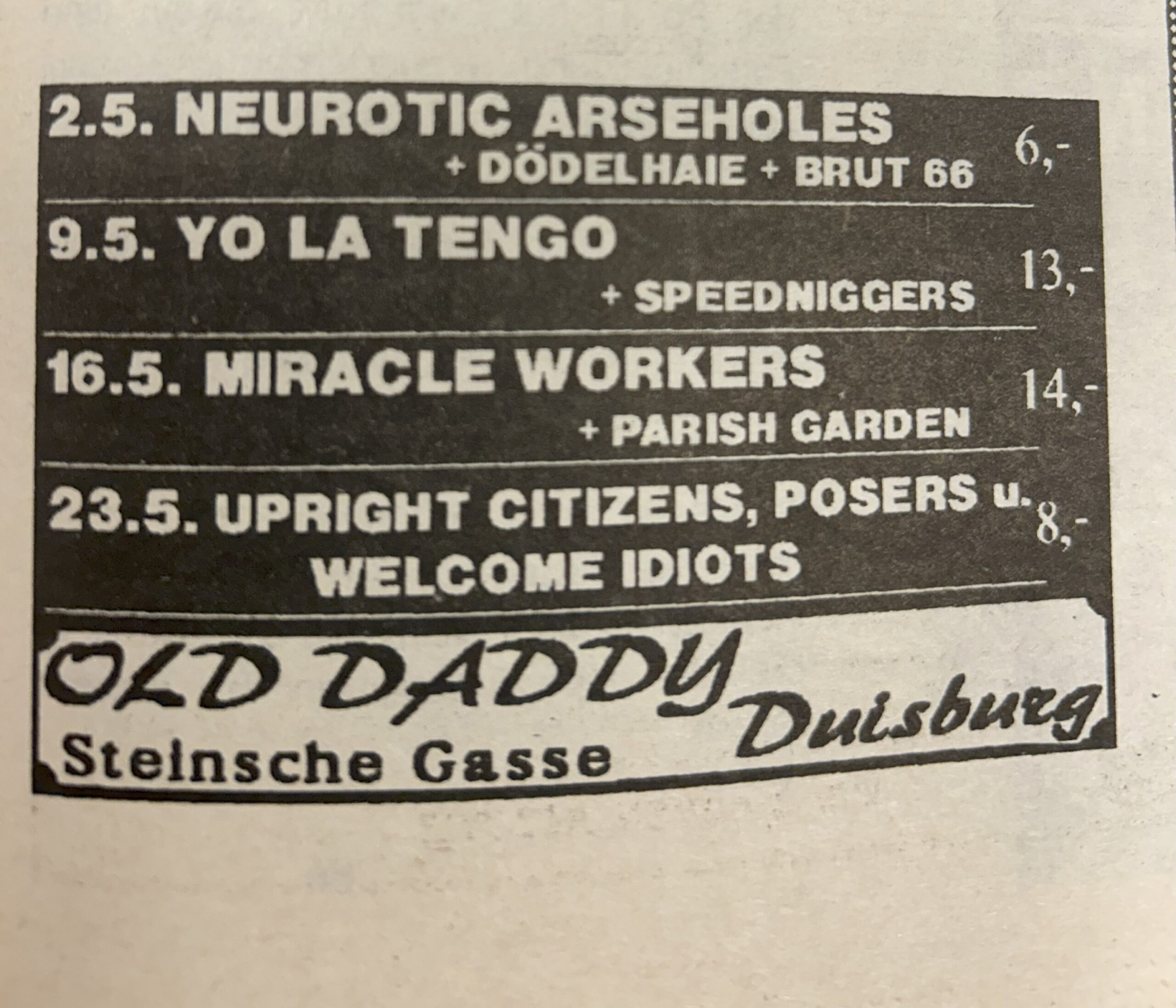 Das Old Daddy etablierte sich auch als sehr wichtiger Ort für Live-Konzerte. Sicherlich ein Verdienst des damaligen Geschäftsführers Rolf Stanietzki, der Enthusiast*innen ohne nennenswerte Hindernisse die Möglichkeiten gab, Konzerte im Daddy zu organisieren.
