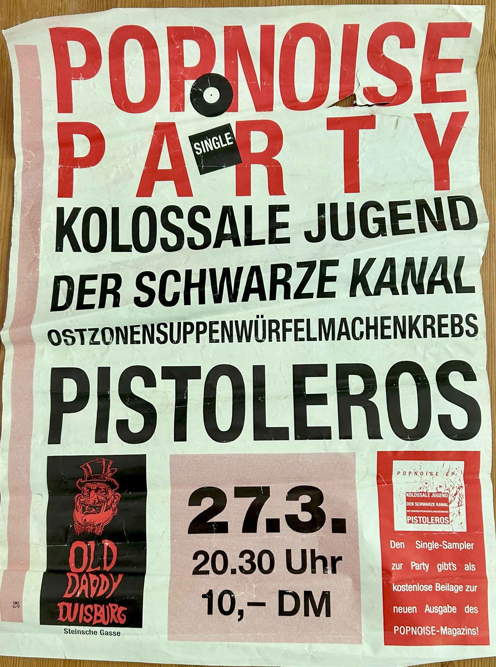 Nur ein paar illustre Beispiele: Mudhoney, Lemonheads, Screaming Trees, Shudder to think, Naked Raygun, Bastro, Das Damen, Yo La Tengo … Duisburg war so für Augenblicke tatsächlich am Puls der Zeit. Selbst ein echter Rockstar von Stadionformat, Dave Grohl, trat dereinst im Duisburger Daddy auf. Ein paar Jahre bevor es mit Nirvana losging – noch minderjährig – als Drummer der Washingtoner Band Scream. Wenn man gut aufpasst, kann man Schnipsel dieses Gigs im Kinofilm „Salad Days“ aus dem Jahre 2014 entdecken.